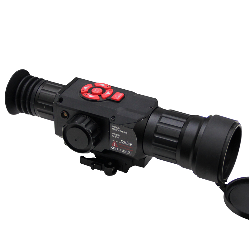 Onick RM-55 monocular day and night infrared night vision sight adopts advanced uncooled vanadium oxide or polysilicon and advanced imaging circuit to optimize the optical system. The product appearance and structure design is optimized based on ergonomics. The product has enhanced waterproof design and reaches IP67 protection level. Low power consumption design, using a single built-in rechargeable battery, the continuous working time can reach more than 5 hours, meeting the requirement of using the battery all night without replacing it. In addition, it has advanced fast startup performance and can quickly image in 3 seconds after booting, which significantly improves the user's quick response ability. The product adopts a high refresh frequency design, allowing the operator to gain the ability to observe fast-moving targets. It is equipped with a high-quality objective lens, has high performance, is not afraid of strong light, is safe and reliable, and can be installed on a tripod for long-distance night observation. The night observation distance can reach 1000 meters, and can be connected to cameras, camcorders, and wireless image transmission equipment.